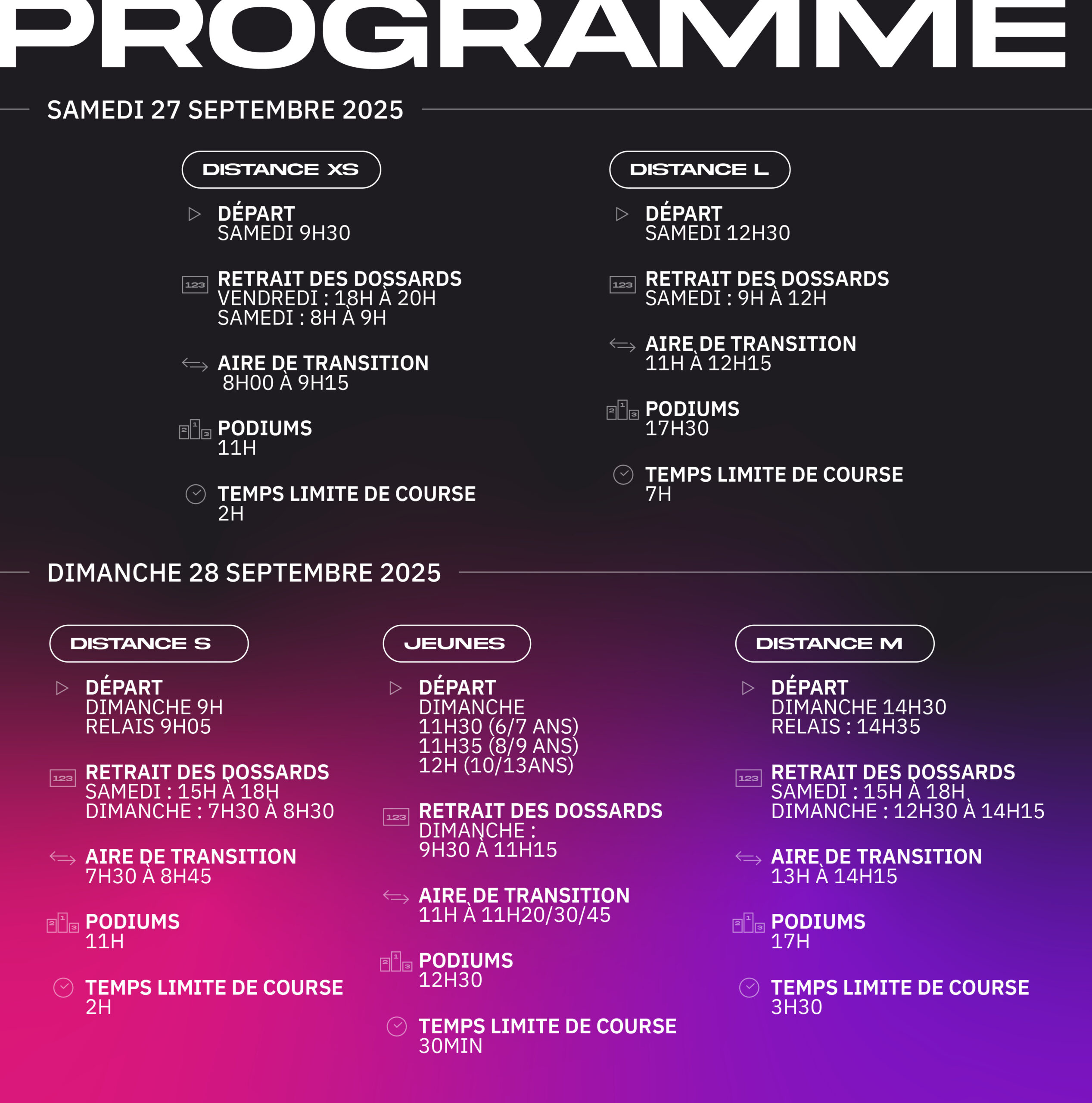 Parmi nos formats, les minimes (14-15) peuvent faire le XS en individuel et S en relais et les cadets (16-17) peuvent faire le S en individuel et le M et le S en relais.